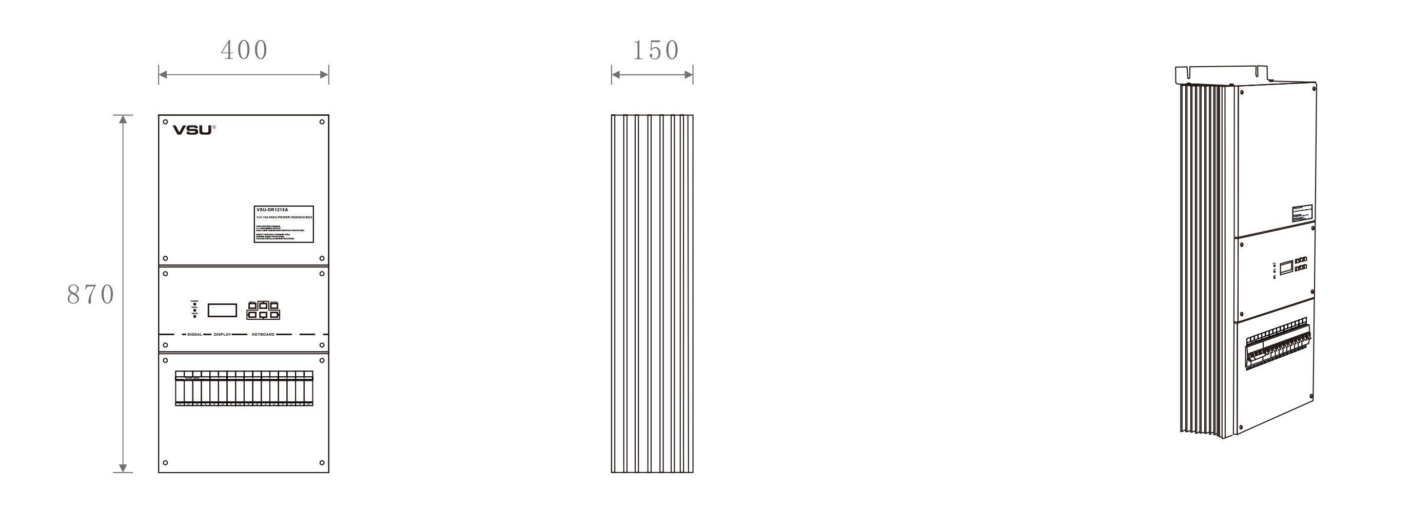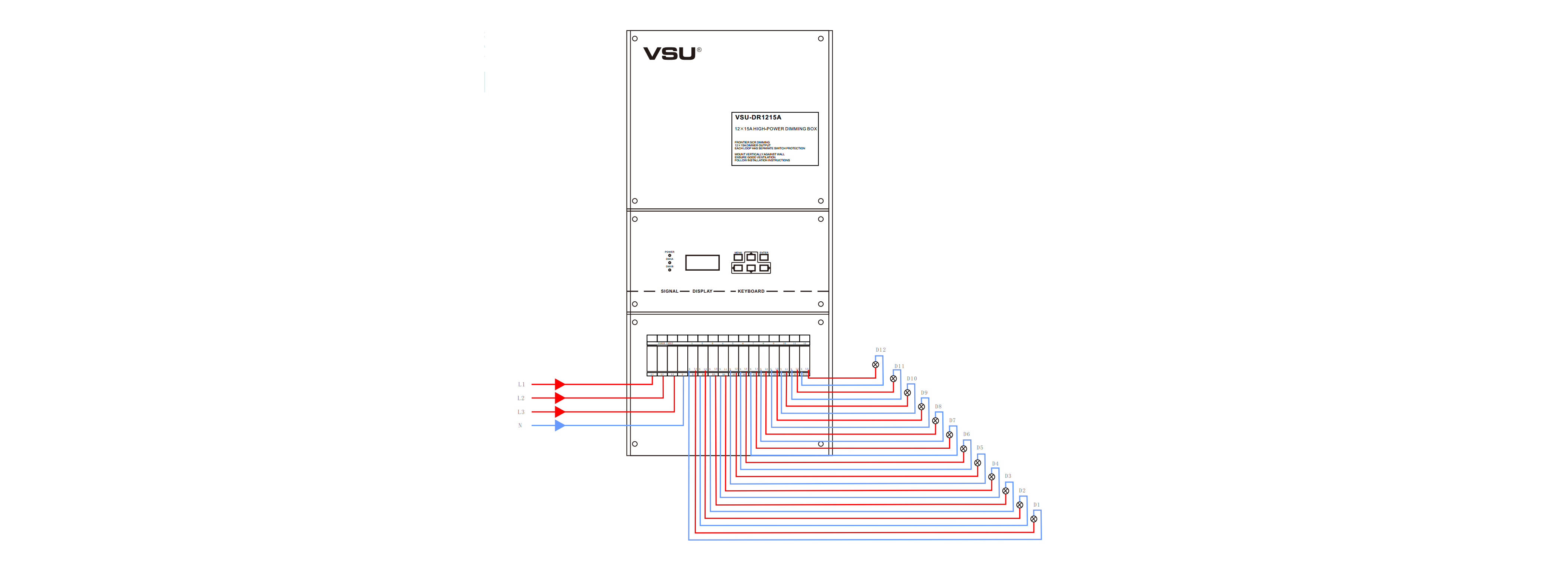 本產(chǎn)品為掛壁式安裝,前沿可控硅調(diào)光;12組調(diào)光通道輸出,每通道3200W;輕巧型設計美觀大方。帶斷路器保護; |